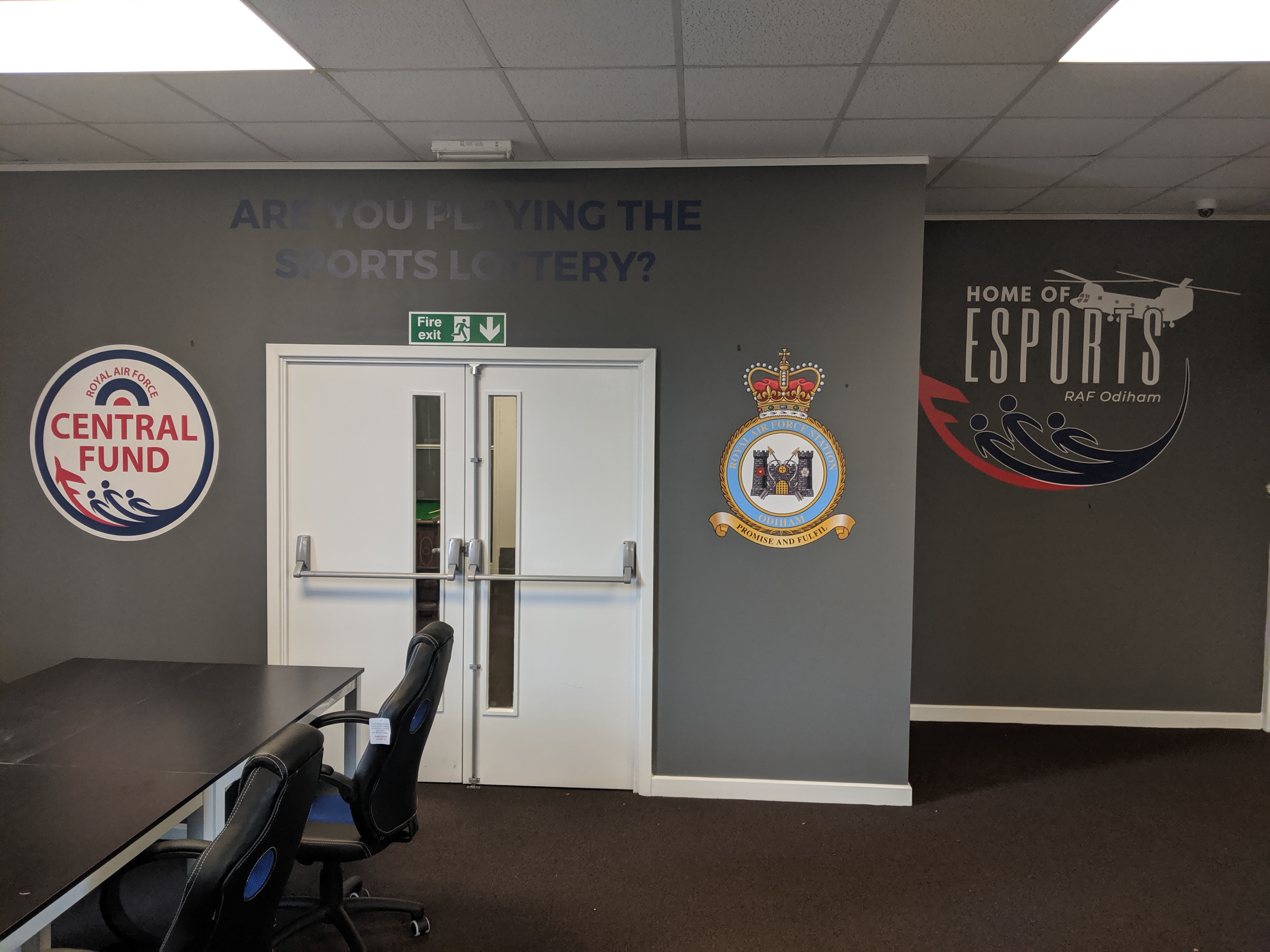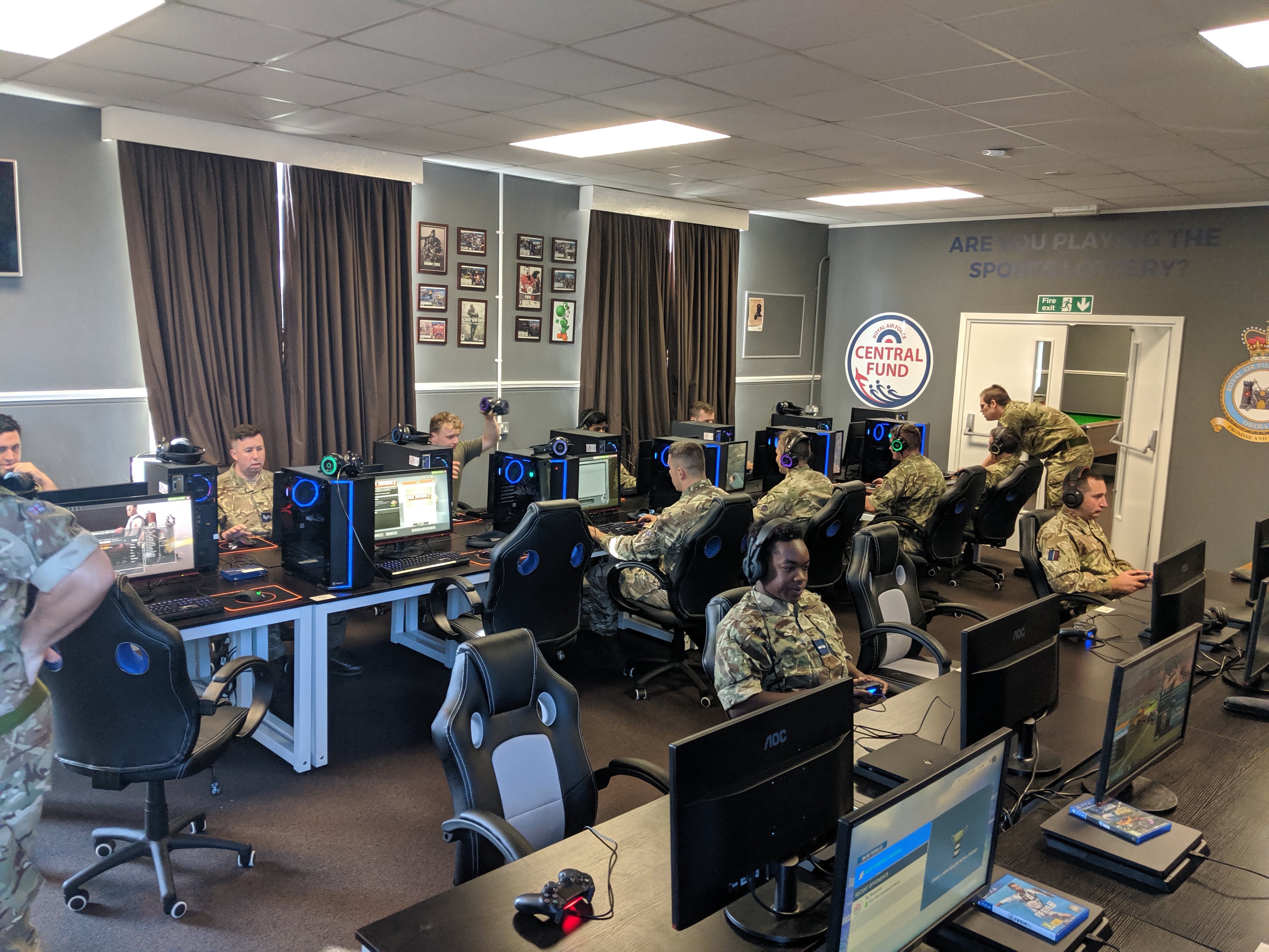 Look, after this point, it all gets a little blurry. The day went so incredibly quickly. I remember Claire from the RAF Central Fund being there, offering her congratulations, and the Station Commander himself coming in. The call of “room sit up!” as the players were mid-game did make me chuckle a little bit, but then they simply carried on. I vaguely remember showing them all around the room. The Central Fund had sent some awesome graphics for the walls; they were a work of art, clearly proclaiming that RAF Odiham had been declared the OFFICIAL home of Esports. How I forgot to mention these earlier, I don’t know, but it was a deeply proud moment. No other Station could say that. I was truly proud.